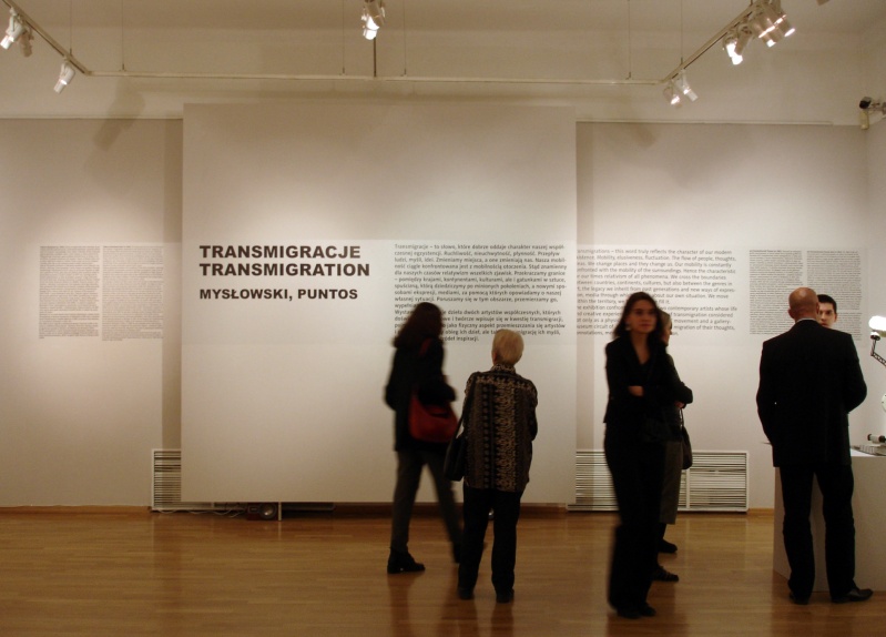 Wystawa Transmigracje w Międzynarodowym Centrum Kultury w Krakowie konfrontuje dzieła dwóch artystów współczesnych, których doświadczenie życiowe i twórcze wpisuje się w kwestię transmigracji. Malarz, grafik, rzeźbiarz, autor instalacji i fotografik Tadeusz Mysłowski jest polskim twórcą mieszkającym w Nowym Jorku. Jani Konstantinovski Puntos to uprawiający grafikę, sztukę instalacji artysta pochodzenia greckiego tworzący w Polsce i USA. Artyści znają się i przyjaźnią od lat, parokrotnie konfrontowali swoje dzieła przy okazji wspólnych wystaw. Obaj pojmują transmigrację nie tylko jako fizyczny aspekt przemieszczania się artysty i jego dzieł, ale także jako migrację myśli, konotacji, pamięci, źródeł inspiracji.